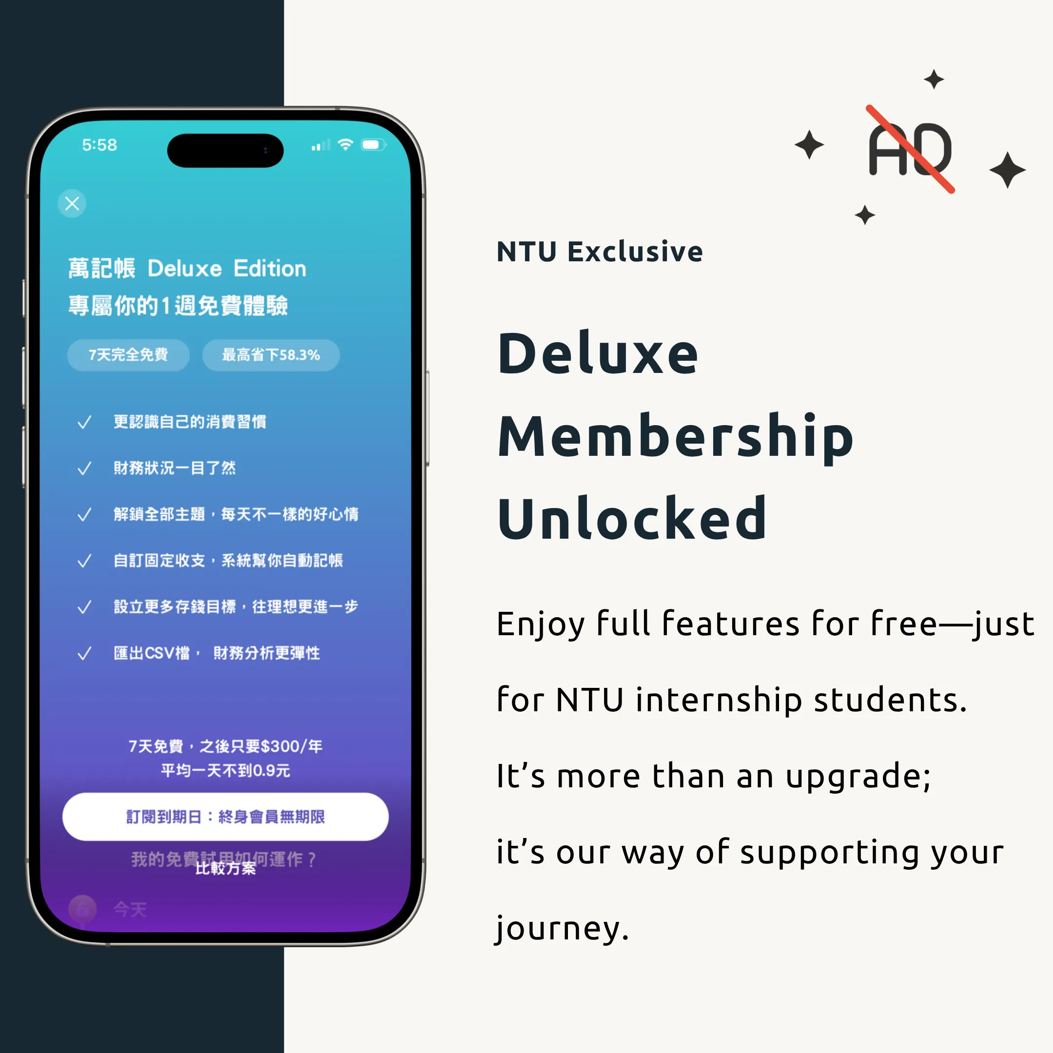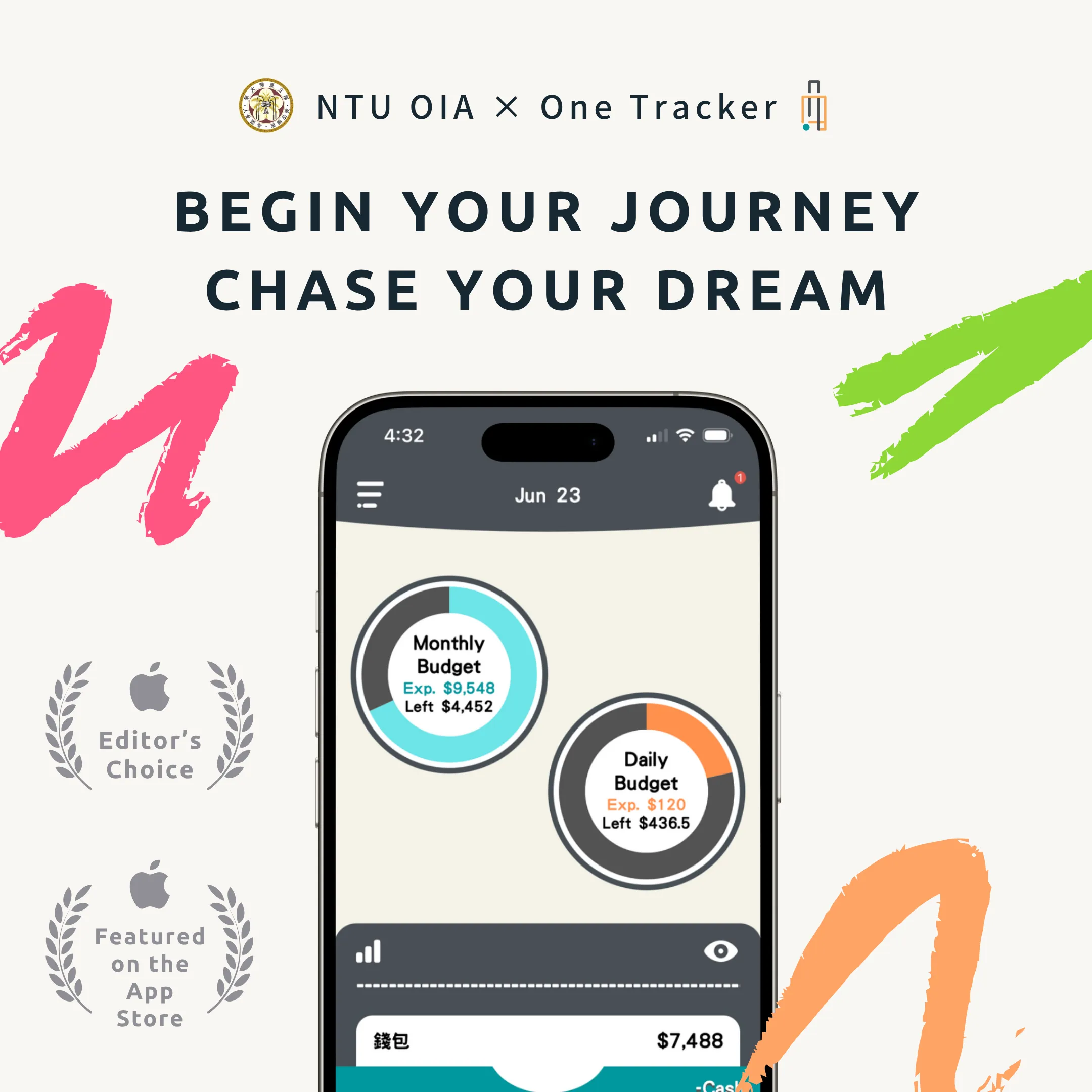 NTU OIA is excited to announce our new collaboration with One Tracker, a company that develops a budget app called OneBookkeeping. Successful applicants will receive a 6-month Deluxe Edition subscription to OneBookkeeping! Applicants who pass the first round review by NTU OIA will receive the following benefits: